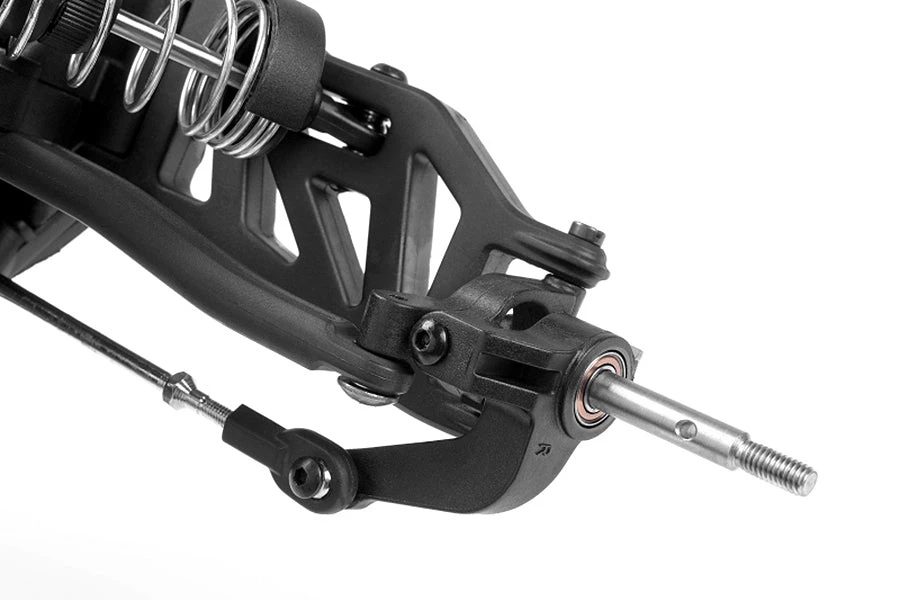 To brave the rough terrain, a good suspension system is extremely important. The Triton SP is equipped with oversized suspension elements made of the special composite material HiCC8. The shock absorbers are “Big Bore” type (ø16mm), with much more volume and therefore a much better damping than the smaller shock absorbers that are standard mounted on 1/10 scale models. The shock absorbers are threaded for easy and precise spring tension adjustment.